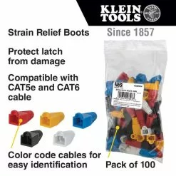 Klein Tools Strain Relief Boots For RJ45 Data Plugs, CAT5e/CAT6 Cable, 100-Pack, VDV824-650*